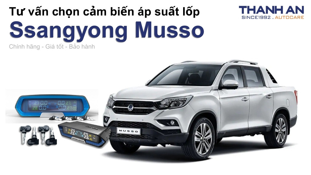 SUV mạnh mẽ với thiết kế hiện đại, Musso gây ấn tượng với khả năng vận hành mạnh mẽ và không gian nội thất rộng rãi. Việc thay bình ắc quy, rửa xe và thay lốp đúng hạn sẽ giúp Musso luôn vận hành trơn tru tại TP.HCM. Nhằm kiểm soát được áp suất bên trong lốp, trang bị cảm biến áp suất lốp cho Ssangyong Musso là giải pháp hiệu quả.