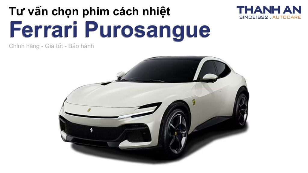 Dán phim cách nhiệt cho Ferrari Purosangue mang lại ba nhóm lợi ích chính, đáp ứng mọi nhu cầu sử dụng. Thứ nhất là về Nhiệt & Chói: phim giúp giảm đáng kể sức nóng từ môi trường, duy trì không gian cabin mát mẻ và giảm lóa từ ánh nắng hay đèn xe khác, giúp người lái luôn thoải mái và tập trung. Thứ hai là về Sức khỏe & Nội thất: khả năng ngăn chặn tia UV đến 99.9% bảo vệ làn da của các thành viên trong gia đình và gìn giữ vẻ đẹp nguyên bản của các vật liệu nội thất cao cấp. Cuối cùng là Riêng tư & Thẩm mỹ: phim cách nhiệt với các mức độ tối màu khác nhau tạo ra một không gian riêng tư, sang trọng cho hàng ghế sau, đồng thời tăng thêm vẻ mạnh mẽ, bí ẩn cho ngoại hình của chiếc FUV độc đáo này.