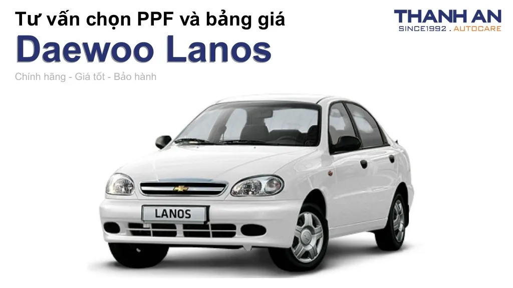 Nhằm bảo vệ nội và ngoại thất xe khỏi trầy xước, phai màu, dán PPF ô tô Daewoo Lanos là giải pháp hiệu quả. Bạn muốn dán PPF cho chiếc Daewoo Lanos của mình nhưng không biết PPF nào sẽ phù hợp? Trong bài viết này, Thanh An sẽ cung cấp cho bạn toàn bộ những kiến thức cần biết về dán PPF xe Daewoo Lanos và mẹo để chọn được loại PPF tốt nhất.