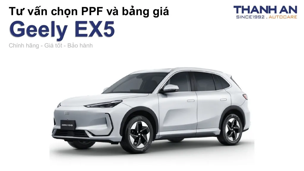 Nhằm bảo vệ nội và ngoại thất xe khỏi trầy xước, phai màu, dán PPF ô tô Geely EX5 là giải pháp hiệu quả. Bạn muốn dán PPF cho chiếc Geely EX5 của mình nhưng không biết PPF nào sẽ phù hợp? Trong bài viết này, Thanh An sẽ cung cấp cho bạn toàn bộ những kiến thức cần biết về dán PPF xe Geely EX5 và mẹo để chọn được loại PPF tốt nhất.