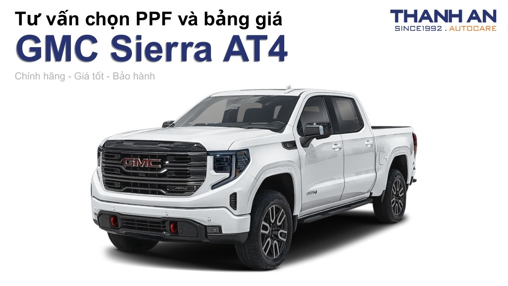 Nhằm bảo vệ nội và ngoại thất xe khỏi trầy xước, phai màu, dán PPF ô tô GMC Sierra AT4 là giải pháp hiệu quả. Bạn muốn dán PPF cho chiếc GMC Sierra AT4 của mình nhưng không biết PPF nào sẽ phù hợp? Trong bài viết này, Thanh An sẽ cung cấp cho bạn toàn bộ những kiến thức cần biết về dán PPF xe GMC Sierra AT4 và mẹo để chọn được loại PPF tốt nhất.