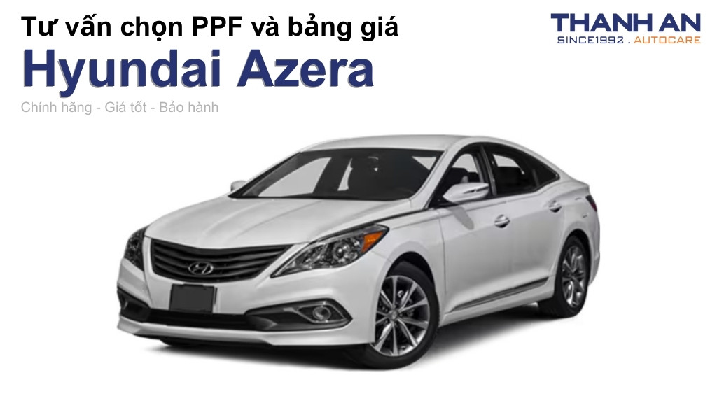 Bảng giá dán PPF xe ô tô Hyundai Azera vô cùng đa dạng, đầu tư vào PPF cao cấp giúp cách nhiệt vượt trội, bảo vệ ngoại thất và tăng cường độ bền của sơn xe. Dưới đây là chi tiết!