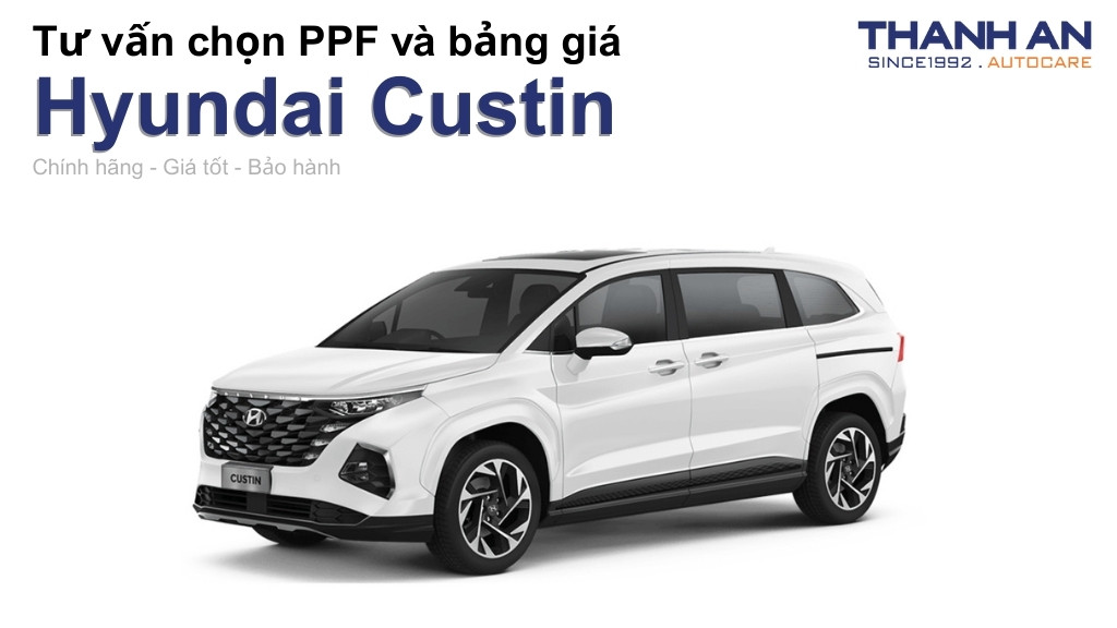 Bảng giá dán PPF xe ô tô Hyundai Custin vô cùng đa dạng, đầu tư vào PPF cao cấp giúp cách nhiệt vượt trội, bảo vệ ngoại thất và tăng cường độ bền của sơn xe. Dưới đây là chi tiết!