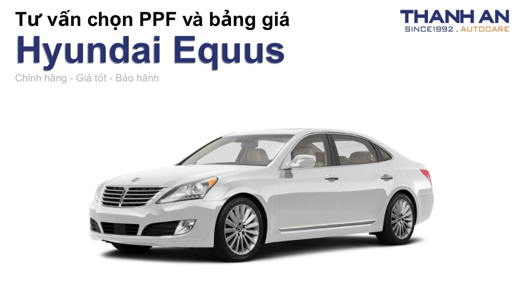 Bảng giá dán PPF xe ô tô Hyundai Equus vô cùng đa dạng, đầu tư vào PPF cao cấp giúp cách nhiệt vượt trội, bảo vệ ngoại thất và tăng cường độ bền của sơn xe. Dưới đây là chi tiết!