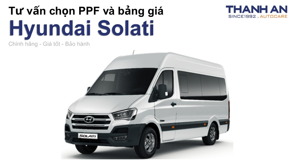 Bảng giá dán PPF xe ô tô Hyundai Solati vô cùng đa dạng, đầu tư vào PPF cao cấp giúp cách nhiệt vượt trội, bảo vệ ngoại thất và tăng cường độ bền của sơn xe. Dưới đây là chi tiết!