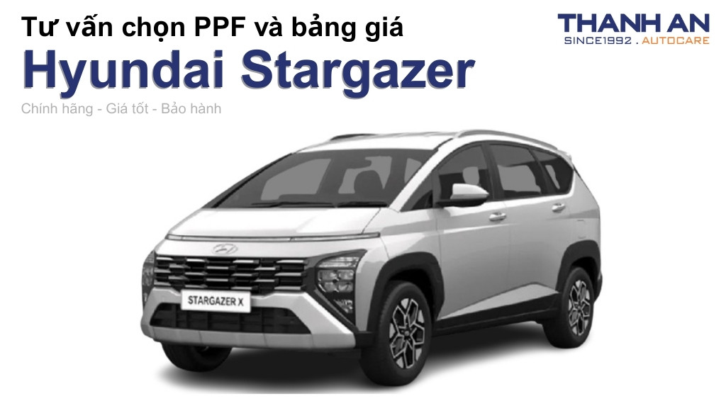 Nhằm bảo vệ nội và ngoại thất xe khỏi trầy xước, phai màu, dán PPF ô tô Hyundai Stargazer là giải pháp hiệu quả. Bạn muốn dán PPF cho chiếc Hyundai Stargazer của mình nhưng không biết PPF nào sẽ phù hợp? Trong bài viết này, Thanh An sẽ cung cấp cho bạn toàn bộ những kiến thức cần biết về dán PPF xe Hyundai Stargazer và mẹo để chọn được loại PPF tốt nhất.