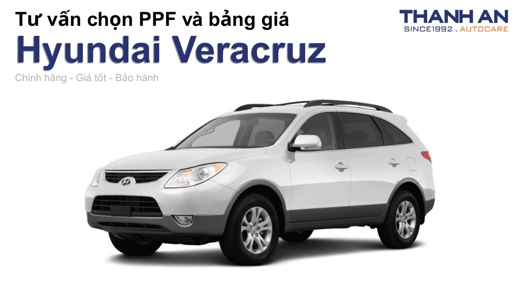 Nhằm bảo vệ nội và ngoại thất xe khỏi trầy xước, phai màu, dán PPF ô tô Hyundai Veracruz là giải pháp hiệu quả. Bạn muốn dán PPF cho chiếc Hyundai Veracruz của mình nhưng không biết PPF nào sẽ phù hợp? Trong bài viết này, Thanh An sẽ cung cấp cho bạn toàn bộ những kiến thức cần biết về dán PPF xe Hyundai Veracruz và mẹo để chọn được loại PPF tốt nhất.