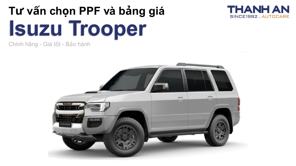 Nhằm bảo vệ nội và ngoại thất xe khỏi trầy xước, phai màu, dán PPF ô tô Isuzu Trooper là giải pháp hiệu quả. Bạn muốn dán PPF cho chiếc Isuzu Trooper của mình nhưng không biết PPF nào sẽ phù hợp? Trong bài viết này, Thanh An sẽ cung cấp cho bạn toàn bộ những kiến thức cần biết về dán PPF xe Isuzu Trooper và mẹo để chọn được loại PPF tốt nhất.