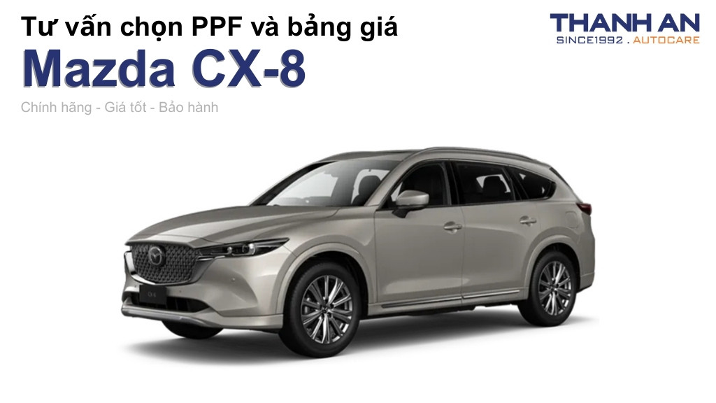 Dán PPF cho Mazda CX-8 không chỉ là một khoản đầu tư để bảo vệ chiếc xe, mà còn là cách để bạn gìn giữ vẻ đẹp và giá trị mà ngôn ngữ thiết kế KODO mang lại. Nó là sự kết hợp hoàn hảo giữa công nghệ tiên tiến và vẻ đẹp tinh tế, giúp chiếc xe của bạn luôn giữ được sự sang trọng và lịch lãm như ngày đầu tiên. Hãy tìm đến các chuyên gia để được tư vấn và thực hiện dịch vụ một cách chuyên nghiệp nhất, đảm bảo tác phẩm nghệ thuật của bạn luôn được bảo vệ một cách hoàn hảo.
