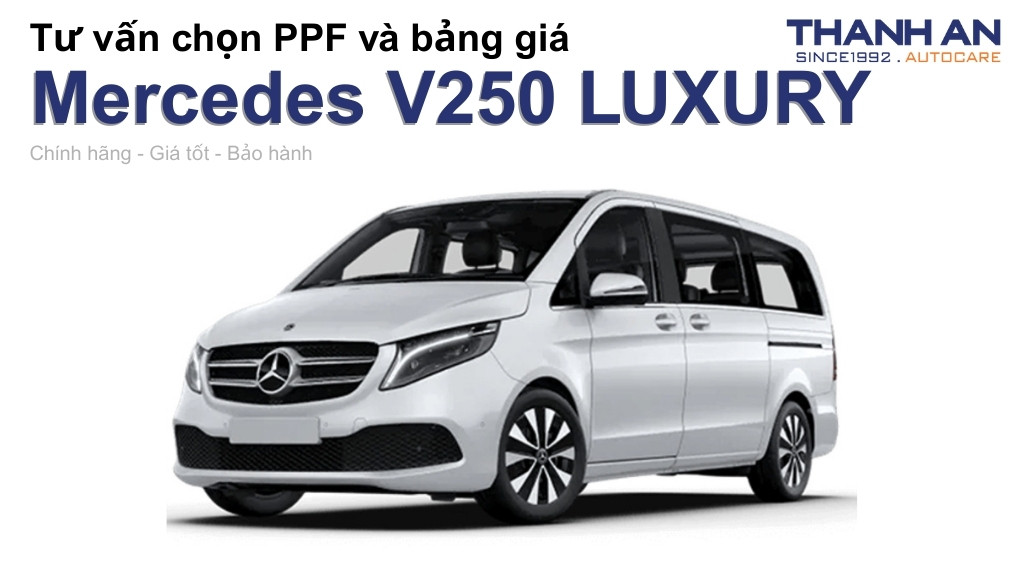 Nhằm bảo vệ nội và ngoại thất xe khỏi trầy xước, phai màu, dán PPF ô tô Mercedes V250 LUXURY là giải pháp hiệu quả. Bạn muốn dán PPF cho chiếc Mercedes V250 LUXURY của mình nhưng không biết PPF nào sẽ phù hợp? Trong bài viết này, Thanh An sẽ cung cấp cho bạn toàn bộ những kiến thức cần biết về dán PPF xe Mercedes V250 LUXURY và mẹo để chọn được loại PPF tốt nhất.