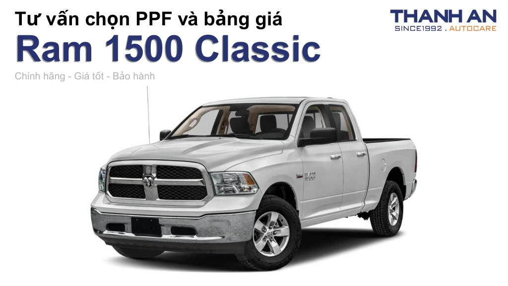 Bảng giá dán PPF xe ô tô Ram 1500 Classic vô cùng đa dạng, đầu tư vào PPF cao cấp giúp cách nhiệt vượt trội, bảo vệ ngoại thất và tăng cường độ bền của sơn xe. Dưới đây là chi tiết!