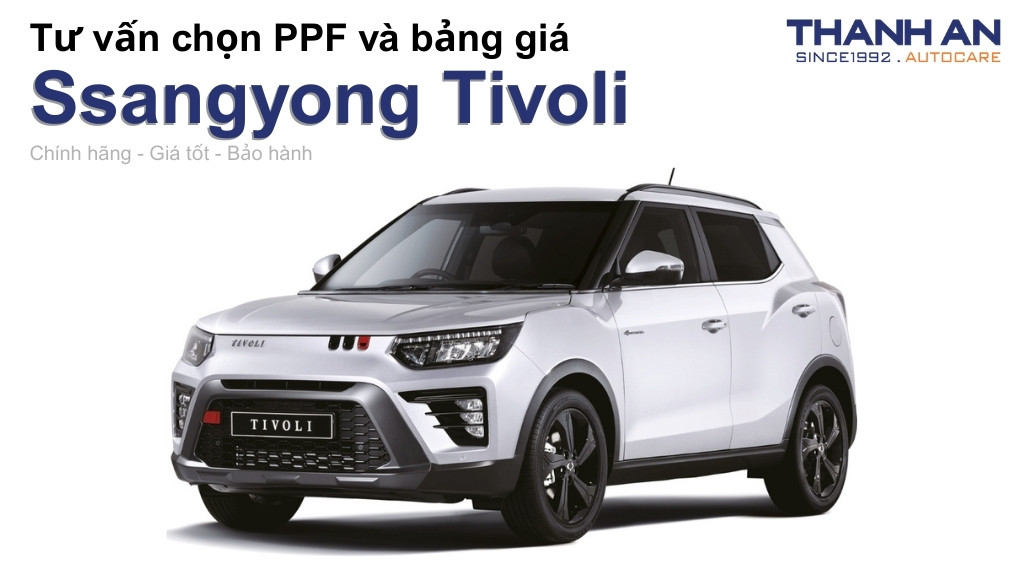Nhằm bảo vệ nội và ngoại thất xe khỏi trầy xước, phai màu, dán PPF ô tô Ssangyong Tivoli là giải pháp hiệu quả. Bạn muốn dán PPF cho chiếc Ssangyong Tivoli của mình nhưng không biết PPF nào sẽ phù hợp? Trong bài viết này, Thanh An sẽ cung cấp cho bạn toàn bộ những kiến thức cần biết về dán PPF xe Ssangyong Tivoli và mẹo để chọn được loại PPF tốt nhất.