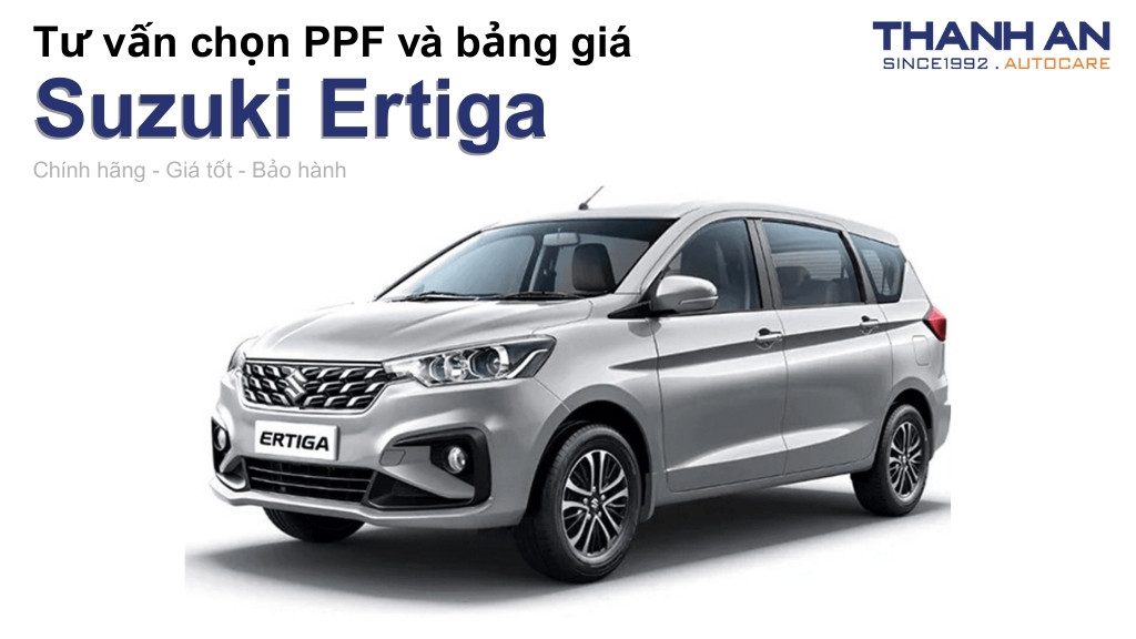 Nhằm bảo vệ nội và ngoại thất xe khỏi trầy xước, phai màu, dán PPF ô tô Suzuki Ertiga là giải pháp hiệu quả. Bạn muốn dán PPF cho chiếc Suzuki Ertiga của mình nhưng không biết PPF nào sẽ phù hợp? Trong bài viết này, Thanh An sẽ cung cấp cho bạn toàn bộ những kiến thức cần biết về dán PPF xe Suzuki Ertiga và mẹo để chọn được loại PPF tốt nhất.