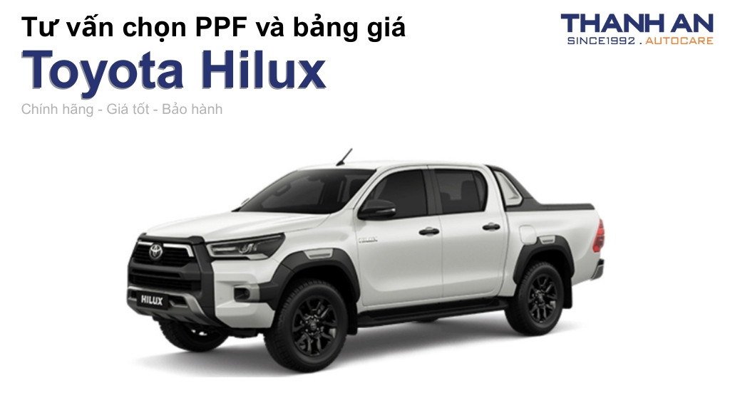 Nhằm bảo vệ nội và ngoại thất xe khỏi trầy xước, phai màu, dán PPF ô tô Toyota Hilux là giải pháp hiệu quả. Bạn muốn dán PPF cho chiếc Toyota Hilux của mình nhưng không biết PPF nào sẽ phù hợp? Trong bài viết này, Thanh An sẽ cung cấp cho bạn toàn bộ những kiến thức cần biết về dán PPF xe Toyota Hilux và mẹo để chọn được loại PPF tốt nhất.