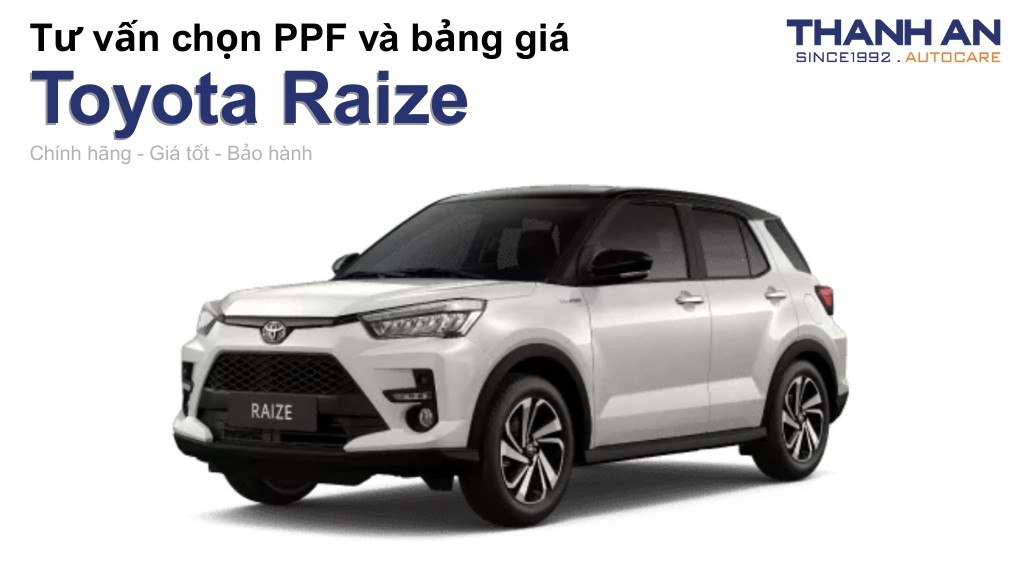 Nhằm bảo vệ nội và ngoại thất xe khỏi trầy xước, phai màu, dán PPF ô tô Toyota Raize là giải pháp hiệu quả. Bạn muốn dán PPF cho chiếc Toyota Raize của mình nhưng không biết PPF nào sẽ phù hợp? Trong bài viết này, Thanh An sẽ cung cấp cho bạn toàn bộ những kiến thức cần biết về dán PPF xe Toyota Raize và mẹo để chọn được loại PPF tốt nhất.