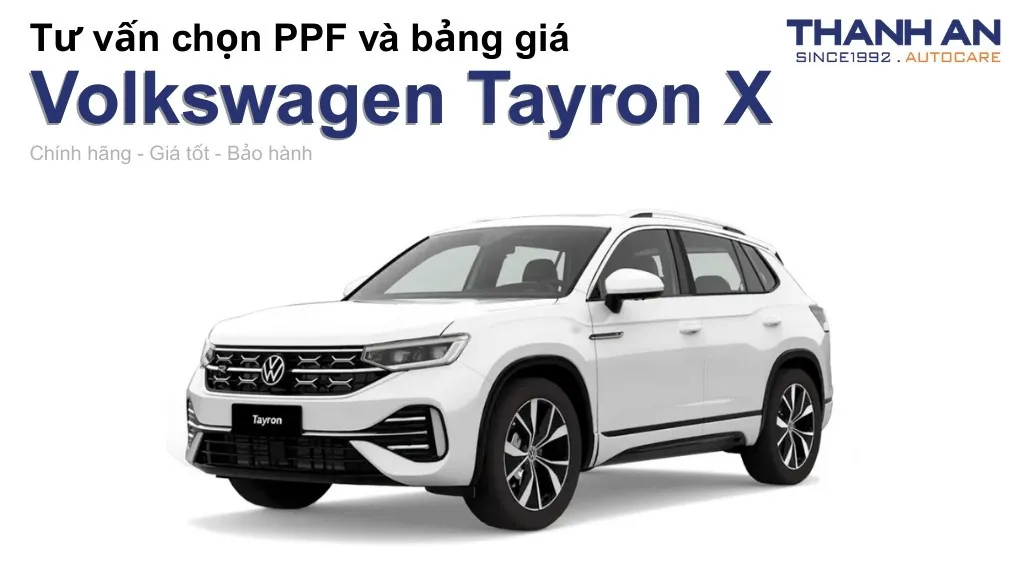 Nhằm bảo vệ nội và ngoại thất xe khỏi trầy xước, phai màu, dán PPF ô tô Volkswagen Tayron X là giải pháp hiệu quả. Bạn muốn dán PPF cho chiếc Volkswagen Tayron X của mình nhưng không biết PPF nào sẽ phù hợp? Trong bài viết này, Thanh An sẽ cung cấp cho bạn toàn bộ những kiến thức cần biết về dán PPF xe Volkswagen Tayron X và mẹo để chọn được loại PPF tốt nhất.