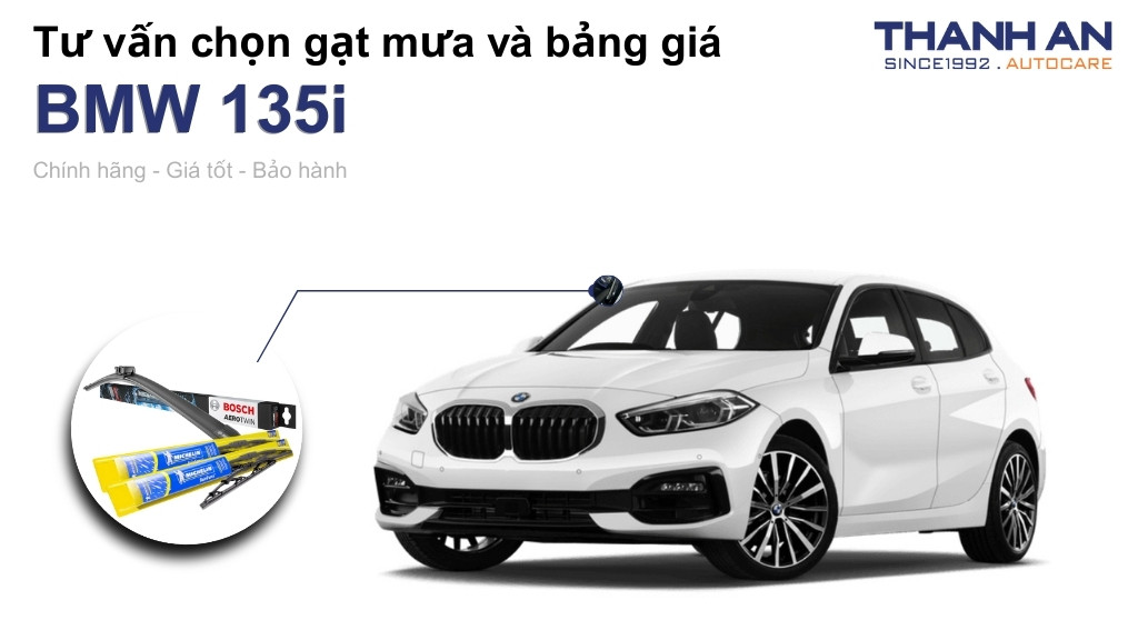Thanh An Autocare tự hào là điểm đến tin cậy chuyên cung cấp gạt mưa Bosch và Michelin chính hãng cho các dòng xe sang tại TP.HCM. Chúng tôi cam kết sản phẩm có nguồn gốc rõ ràng, đúng mã, đúng size và tương thích hoàn toàn với chiếc BMW 135i của bạn.