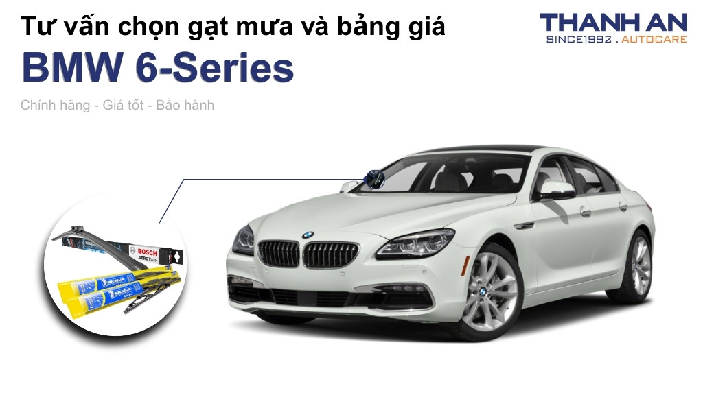 Tại Thanh An Autocare, chúng tôi có sẵn các mã gạt mưa Bosch và Michelin phù hợp cho từng đời xe BMW 6-Series. Đội ngũ kỹ thuật viên được đào tạo bài bản sẽ hỗ trợ kiểm tra và lắp đặt chuẩn xác, đảm bảo không làm ảnh hưởng đến cần gạt hay mặt kính. Khách hàng hoàn toàn yên tâm về chất lượng dịch vụ.
