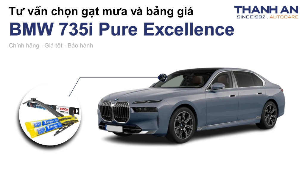 Gạt mưa xe BMW 735i Pure Excellence là chi tiết nhỏ nhưng ảnh hưởng lớn đến an toàn và trải nghiệm lái xe đẳng cấp. Hy vọng những chia sẻ chi tiết từ Thanh An Autocare đã giúp bạn có thêm kiến thức để lựa chọn sản phẩm xứng tầm cho chiếc xe của mình. Đừng để những cơn mưa làm gián đoạn hành trình tuyệt vời của bạn. Hãy liên hệ ngay với chúng tôi để được tư vấn và sở hữu bộ gạt mưa chính hãng chất lượng nhất.