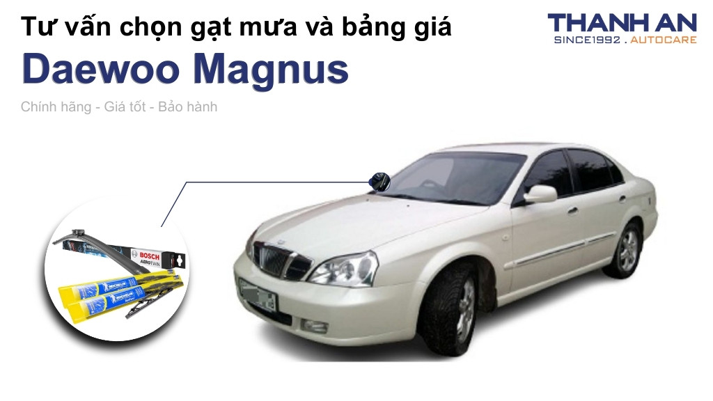 Bạn đang cảm thấy khó chịu vì tầm nhìn bị hạn chế khi lái chiếc Daewoo Magnus dưới trời mưa do gạt mưa cũ đã xuống cấp? Việc trang bị một bộ gạt mưa chất lượng không chỉ giúp kính lái trong suốt mà còn đảm bảo an toàn tuyệt đối cho mọi hành trình của bạn. Hãy cùng Thanh An Autocare tìm hiểu chi tiết về các giải pháp gạt mưa tối ưu nhất dành riêng cho dòng xe này ngay sau đây.