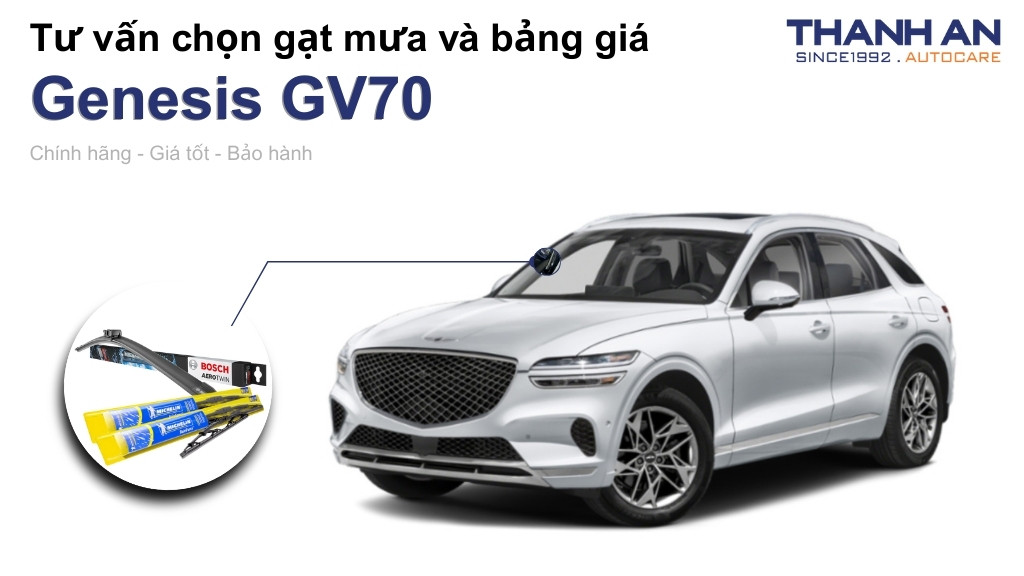 Thanh An Autocare khuyên bạn nên ưu tiên các dòng gạt mưa thân mềm (không khung) để đảm bảo tính khí động học và vẻ đẹp liền lạc cho ngoại thất xe. Các dòng gạt khung sắt truyền thống thường không phù hợp với thiết kế của GV70.