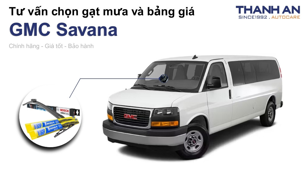 GMC Savana là dòng xe 16 chỗ cỡ lớn với kích thước kính lái rộng, đòi hỏi hệ thống gạt mưa phải hoạt động cực kỳ ổn định để đảm bảo an toàn. Tuy nhiên, việc tìm kiếm bộ gạt mưa xe GMC Savana chuẩn kích thước và chất lượng tại Việt Nam không phải lúc nào cũng dễ dàng. Hãy cùng Thanh An Autocare khám phá giải pháp giúp kính lái luôn trong suốt và hành trình của bạn luôn thuận lợi.