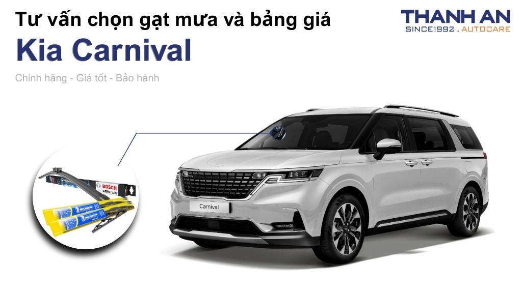 Sở hữu một chiếc MPV cỡ lớn, tầm nhìn thoáng đãng là yếu tố sống còn để đảm bảo an toàn cho cả gia đình trên mọi hành trình. Thanh An Autocare chuyên cung cấp các dòng gạt mưa xe Kia Carnival chính hãng giúp khắc phục triệt để tình trạng kính mờ và tiếng ồn khó chịu. Hãy cùng tìm hiểu giải pháp tối ưu nhất để trả lại vẻ sáng bóng cho kính lái chiếc xe của bạn.