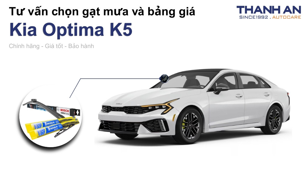 Bạn đang sở hữu chiếc sedan thể thao Kia Optima (hoặc K5 thế hệ mới) nhưng lại gặp khó khăn về tầm nhìn mỗi khi trời đổ mưa? Một bộ gạt mưa chất lượng kém không những gây tiếng ồn khó chịu mà còn tiềm ẩn nguy cơ mất an toàn giao thông do không làm sạch kính lái. Hãy để Thanh An Autocare giúp bạn lựa chọn gạt mưa xe Kia Optima K5 phù hợp nhất, đảm bảo sự êm ái và hiệu quả gạt sạch vượt trội.