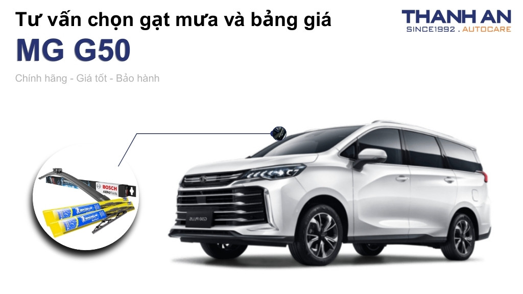 MG G50 là mẫu xe gia đình hiện đại, đòi hỏi độ chính xác cao về thông số kỹ thuật để đảm bảo vùng quét kính lái rộng nhất. Lắp đặt sai kích thước dễ dẫn đến tình trạng gạt bị va vào gioăng kính hoặc chập chờn không sạch.