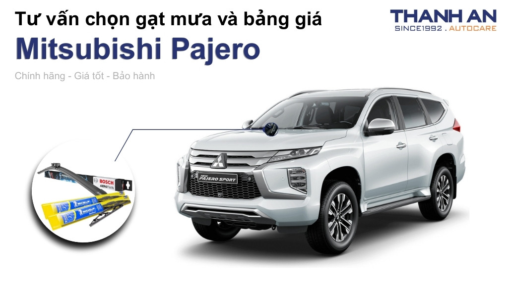 Bạn đang sở hữu chiếc SUV mạnh mẽ Mitsubishi Pajero nhưng tầm nhìn lại bị hạn chế bởi những vệt nước loang lổ trên kính lái? Thanh An Autocare mang đến giải pháp thay thế gạt mưa chính hãng, giúp khôi phục tầm nhìn trong suốt và đảm bảo an toàn tuyệt đối cho những chuyến đi. Hãy cùng chúng tôi tìm hiểu chi tiết về thông số kỹ thuật và các dòng gạt mưa tối ưu nhất cho "chiến mã" của bạn.