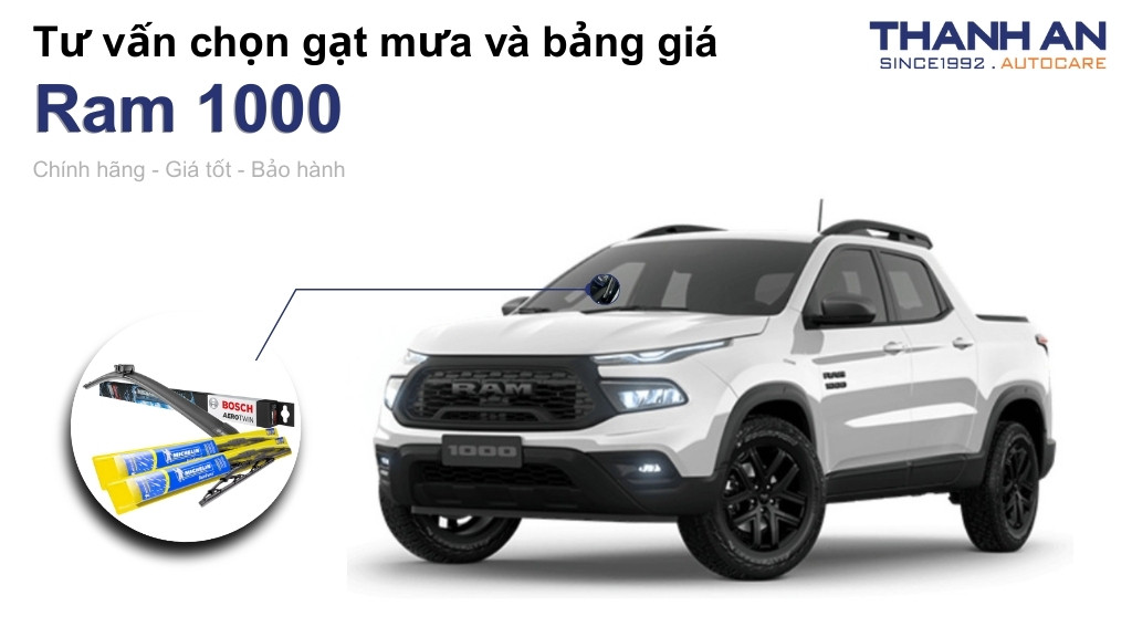 Thanh An Autocare tự hào là đơn vị chuyên phân phối và lắp đặt phụ kiện ô tô chất lượng cao tại TP.HCM. Chúng tôi cung cấp đầy đủ các mã gạt mưa chính hãng phù hợp cho dòng xe Ram 1000. Khách hàng ở xa cũng có thể đặt hàng dễ dàng với dịch vụ giao hàng toàn quốc.