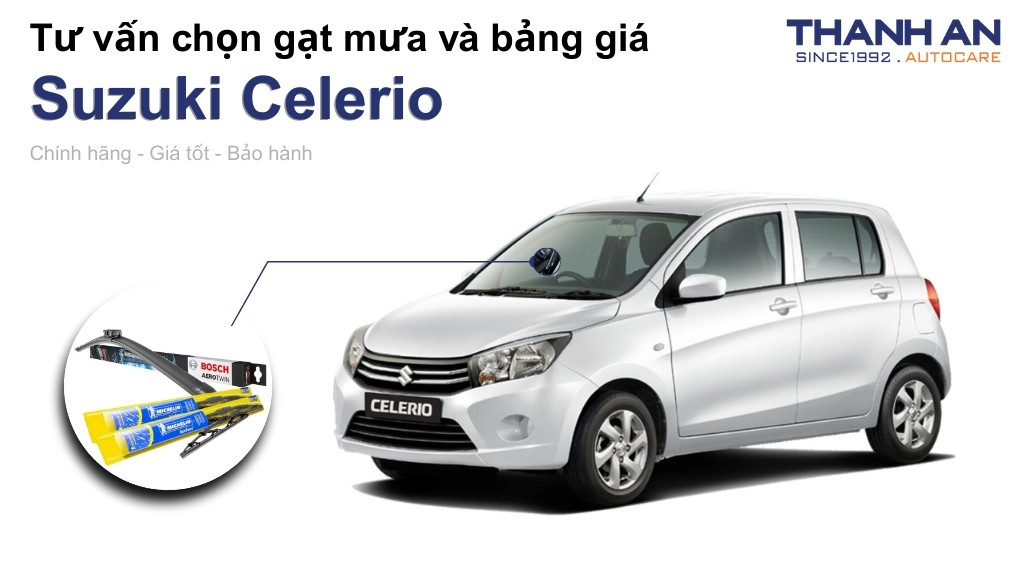 Thanh An Autocare tự hào là đơn vị phân phối phụ kiện ô tô chính hãng uy tín tại Thành phố Hồ Chí Minh. Chúng tôi cung cấp đầy đủ các mã gạt mưa chuyên dụng cho Suzuki Celerio từ các thương hiệu lớn như Bosch và Michelin.