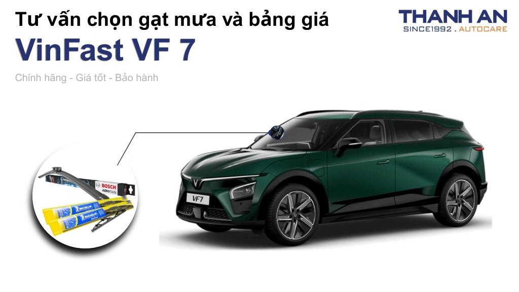 Gạt mưa xe VinFast VF 7 là phụ kiện nhỏ nhưng ảnh hưởng lớn đến trải nghiệm lái xe an toàn. Việc lựa chọn sản phẩm chính hãng từ Bosch AeroTwin hoặc Michelin Flex Beam sẽ mang lại tầm nhìn hoàn hảo cho mọi hành trình. Hy vọng bài viết này đã cung cấp cho bạn những kiến thức giá trị để chăm sóc xế yêu đúng cách. Hãy liên hệ ngay với Thanh An Autocare để được tư vấn và nhận báo giá ưu đãi nhất cho bộ gạt mưa ưng ý!