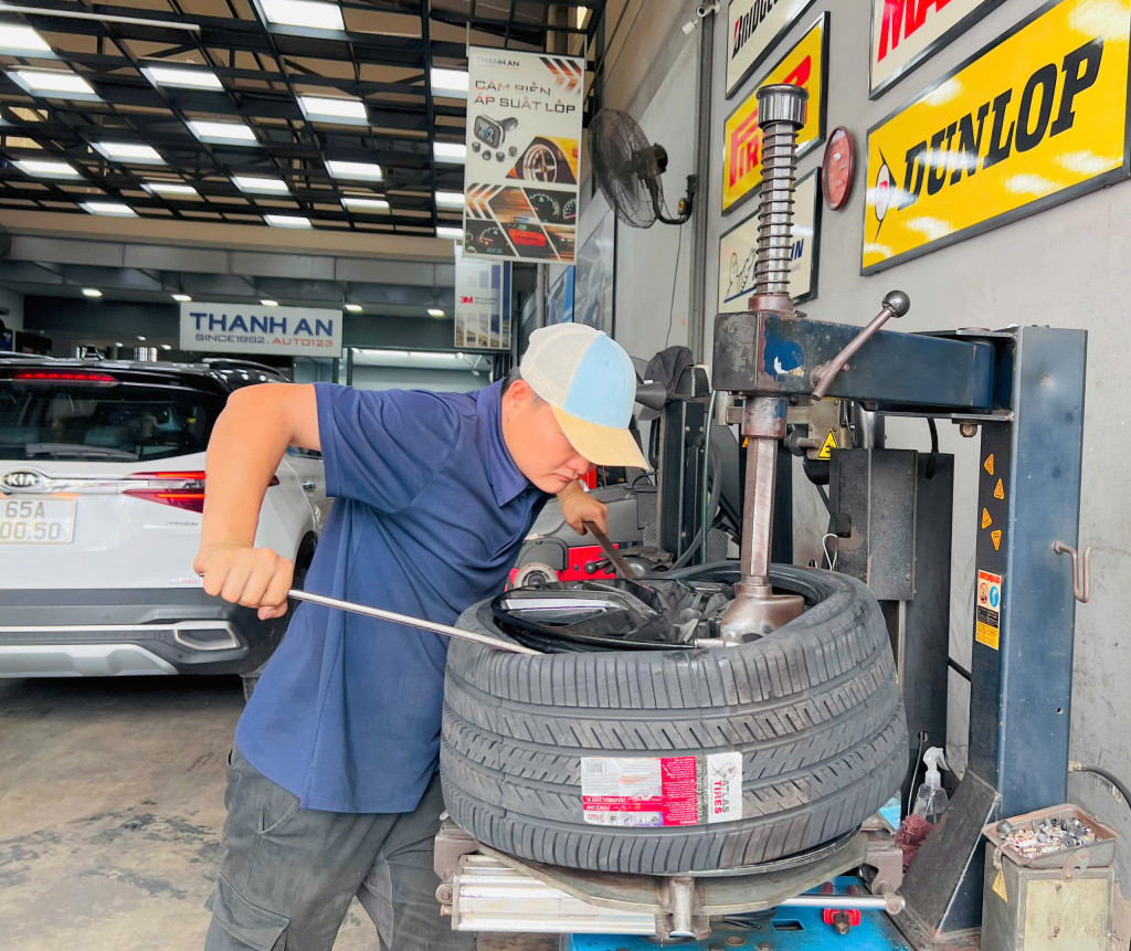 Đội ngũ kỹ thuật viên chuyên nghiệp thay vỏ xe ô tô tại Thanh An