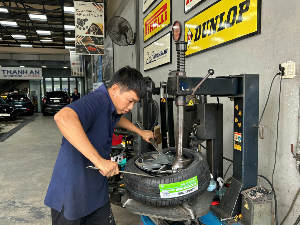 Đội ngũ kỹ thuật viên chuyên nghiệp thay vỏ xe ô tô tại Thanh An