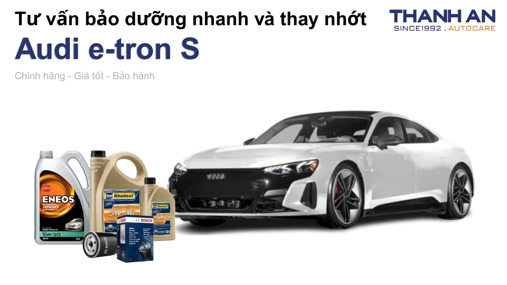 Cả hãng và Thanh An Autocare đều sử dụng các phẩm cấp dầu nhớt (dầu cầu) đạt chuẩn OEM của Audi. Tuy nhiên, khi thay nhớt cho xe Audi e-tron S tại Thanh An Autocare, bạn sẽ tiết kiệm chi phí dịch vụ đáng kể nhưng vẫn được hưởng quy trình chăm sóc tiêu chuẩn xe sang.