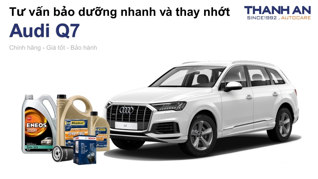 Động cơ xe Đức như Audi Q7 đòi hỏi tiêu chuẩn dầu nhớt rất khắt khe để bảo vệ hệ thống Turbo và các chi tiết cơ khí chính xác. Thanh An Autocare tư vấn khách hàng sử dụng các dòng nhớt tổng hợp toàn phần từ thương hiệu Rheinol (Đức) hoặc ENEOS (Nhật Bản) để đạt hiệu suất tối đa.