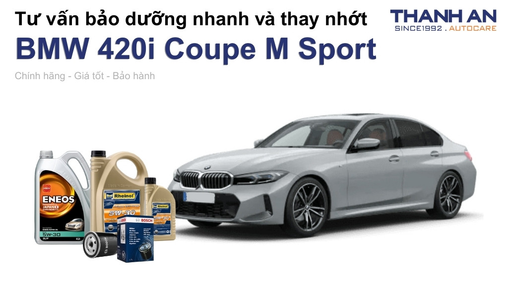 Động cơ tăng áp của BMW 420i Coupe M Sport hoạt động ở nhiệt độ và áp suất rất cao, đòi hỏi dầu nhớt phải có phẩm cấp vượt trội để bảo vệ màng dầu. Chúng tôi khuyến nghị khách hàng ưu tiên sử dụng các sản phẩm từ những thương hiệu danh tiếng toàn cầu để đảm bảo hiệu suất. Hai cái tên hàng đầu mà các chuyên gia tin dùng cho dòng xe Đức này là Rheinol (Đức) và ENEOS (Nhật Bản).