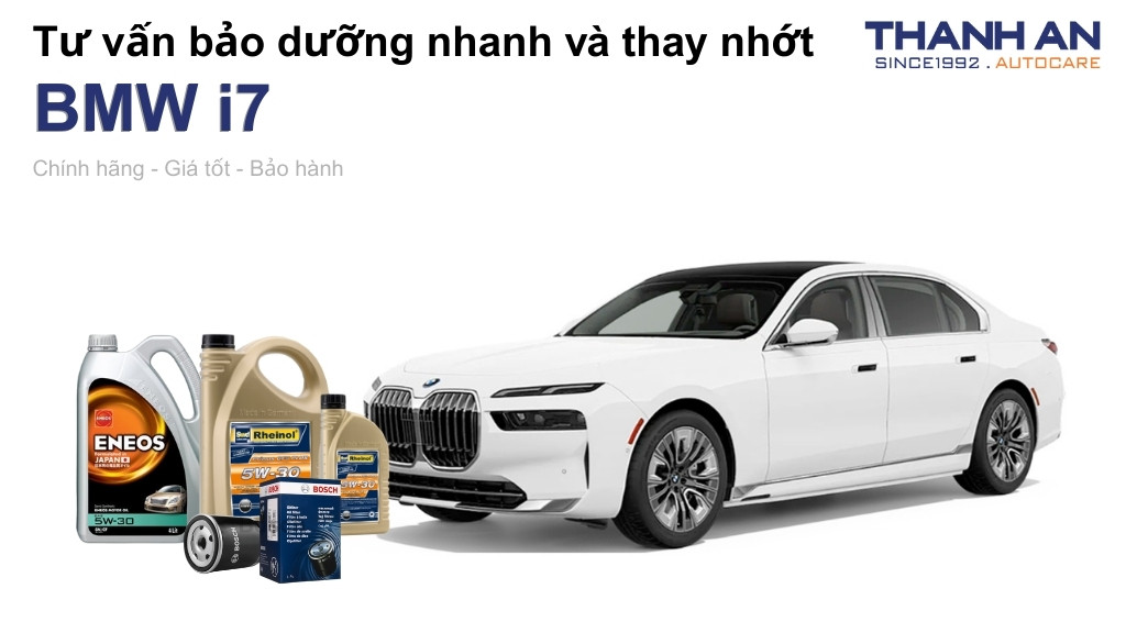 - Xe BMW i7 thay nhớt hãng hay nhớt ngoài tốt hơn? Tại hãng và Thanh An Autocare đều cung cấp các loại dầu nhớt đạt chuẩn OEM của BMW. Tuy nhiên, khi thay nhớt xe BMW i7 tại Thanh An Autocare, bạn sẽ tiết kiệm chi phí hơn so với hãng nhưng vẫn đảm bảo quy trình thay nhớt chuyên nghiệp và chính xác.