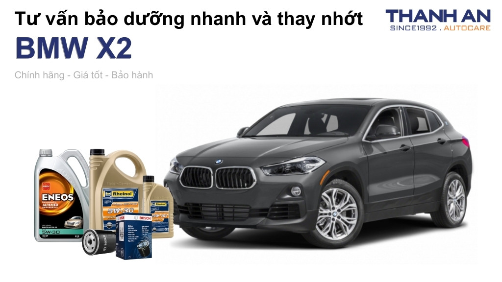 Động cơ xe Đức luôn yêu cầu khắt khe về phẩm cấp dầu nhớt để đảm bảo khả năng bôi trơn tại nhiệt độ cao và áp suất lớn. Thanh An Autocare khuyến nghị khách hàng sử dụng các dòng nhớt tổng hợp toàn phần đạt chuẩn BMW Longlife từ những thương hiệu hàng đầu thế giới. Hai cái tên sáng giá nhất hiện nay phù hợp hoàn hảo cho BMW X2 chính là Rheinol (thương hiệu Đức chuẩn mực) và ENEOS (công nghệ Nhật Bản tiên tiến).