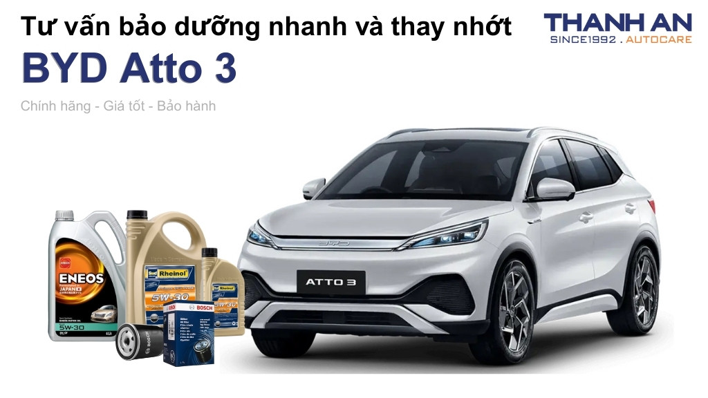 - Xe BYD Atto 3 thay nhớt hãng hay nhớt ngoài tốt hơn? Tại hãng và tại Thanh An Autocare đều sử dụng các loại dầu nhớt đạt chuẩn kỹ thuật khắt khe. Tuy nhiên, khi thay nhớt cho xe BYD Atto 3 tại Thanh An Autocare sẽ tiết kiệm chi phí hơn so với hãng nhưng vẫn đảm bảo quy trình thay nhớt chuyên nghiệp và tận tâm.