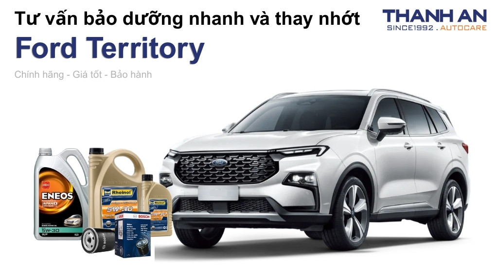 - Xe Ford Territory thay nhớt hãng hay nhớt ngoài tốt hơn? Tại hãng và tại Thanh An Autocare đều sử dụng nhớt đạt chuẩn. Tuy nhiên, thay nhớt cho xe Ford Territory tại Thanh An Autocare giúp bạn tiết kiệm chi phí dịch vụ, thời gian chờ đợi ngắn hơn mà vẫn đảm bảo chất lượng chính hãng.