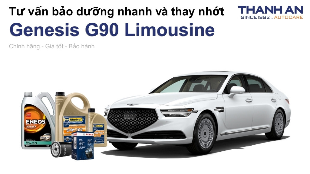 - Xe Genesis G90 Limousine thay nhớt hãng hay nhớt ngoài tốt hơn? Tại hãng và Thanh An Autocare đều cung cấp nhớt chính hãng đảm bảo chất lượng. Tuy nhiên, thay nhớt tại Thanh An Autocare giúp bạn tiết kiệm chi phí đáng kể so với hãng mà vẫn được trải nghiệm quy trình dịch vụ chuyên nghiệp chuẩn 5 sao.