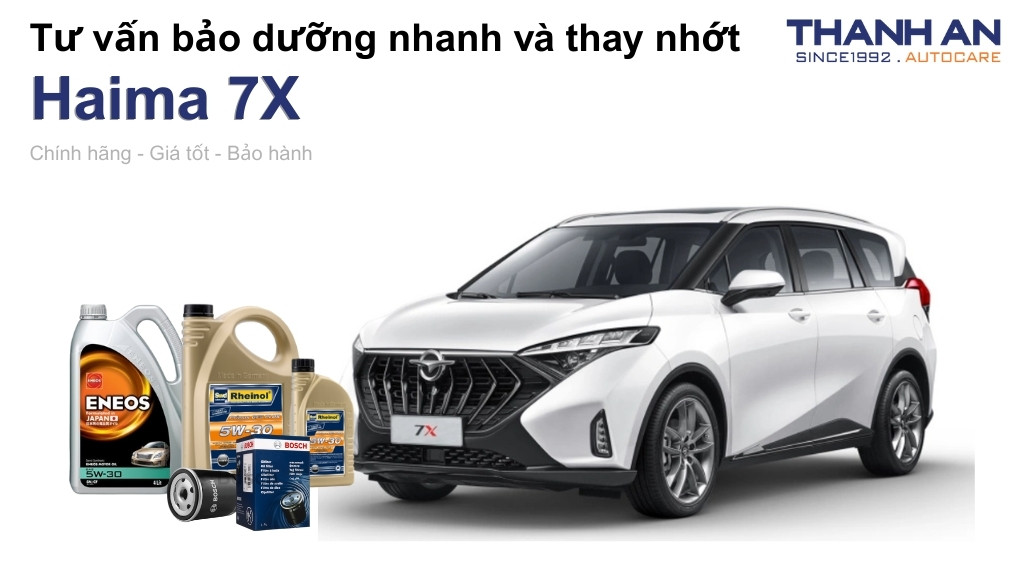 - Xe Haima 7X thay nhớt hãng hay nhớt ngoài tốt hơn? Tại hãng và Thanh An Autocare đều sử dụng nhớt chính hãng chất lượng cao. Tuy nhiên, khi thay nhớt cho xe Haima 7X tại Thanh An Autocare, bạn sẽ tiết kiệm chi phí hơn so với hãng nhưng vẫn đảm bảo quy trình thay nhớt chuyên nghiệp.