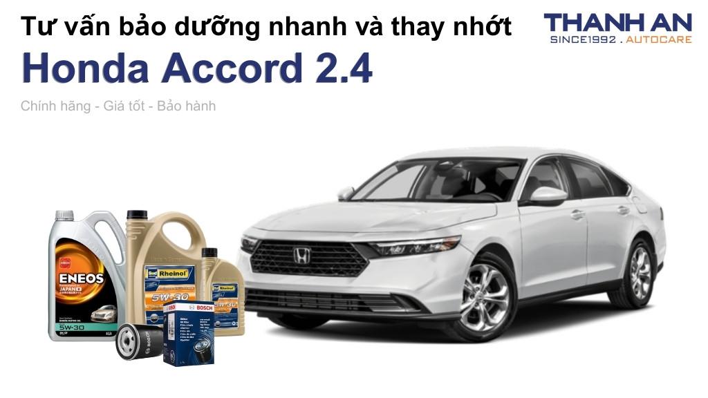 - Xe Honda Accord 2.4 thay nhớt hãng hay nhớt ngoài tốt hơn? Tại hãng và tại Thanh An Autocare đều cung cấp nhớt chính hãng, đảm bảo chất lượng. Tuy nhiên, thay nhớt cho xe Honda Accord 2.4 tại Thanh An Autocare giúp bạn tiết kiệm chi phí dịch vụ đáng kể mà vẫn hưởng quy trình chuyên nghiệp chuẩn hãng.