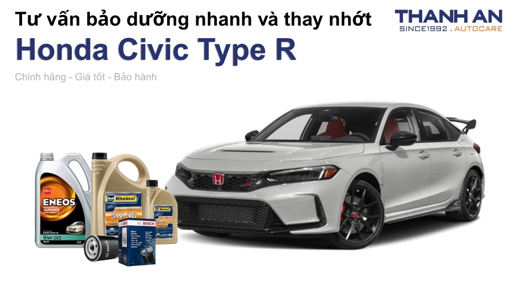 Động cơ tăng áp của Honda Civic Type R sinh nhiệt rất lớn và chịu áp lực cao hơn xe thông thường. Do đó, dòng xe này bắt buộc phải sử dụng các loại nhớt tổng hợp toàn phần (Fully Synthetic) có khả năng chịu nhiệt và duy trì màng dầu ổn định ở tua máy cao. Thanh An Autocare đặc biệt đề xuất hai thương hiệu dầu nhớt hàng đầu là Rheinol (công nghệ Đức) và ENEOS (số 1 Nhật Bản) để đảm bảo hiệu suất tối đa.