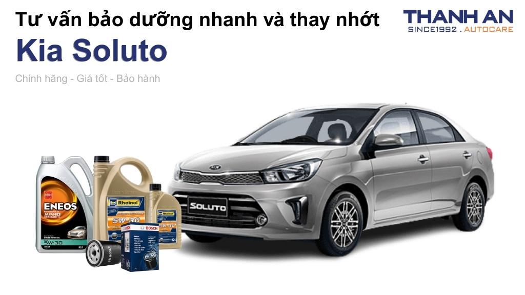 - Xe Kia Soluto thay nhớt hãng hay nhớt ngoài tốt hơn? Tại hãng và tại Thanh An Autocare đều là nhớt chính hãng nhưng khi thay nhớt cho xe Kia Soluto tại Thanh An Autocare sẽ tiết kiệm chi phí hơn so với hãng nhưng vẫn đảm bảo quy trình thay nhớt chuyên nghiệp.