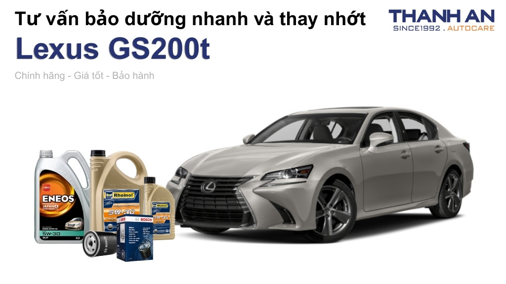 - Xe Lexus GS200t thay nhớt hãng hay nhớt ngoài tốt hơn? Thay nhớt tại Thanh An Autocare đảm bảo chất lượng tương đương hãng với các sản phẩm từ Rheinol hay ENEOS nhưng chi phí tiết kiệm hơn. Quy trình thực hiện chuyên nghiệp và nhanh chóng giúp bạn tiết kiệm thời gian chờ đợi.