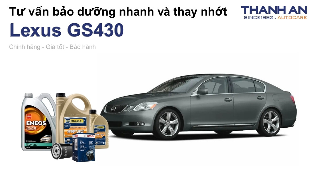 - Xe Lexus GS430 thay nhớt hãng hay nhớt ngoài tốt hơn? Tại hãng và tại Thanh An Autocare đều cung cấp nhớt chính hãng chất lượng cao. Tuy nhiên, khi thay nhớt cho xe Lexus GS430 tại Thanh An Autocare, bạn sẽ tiết kiệm chi phí hơn so với hãng nhưng vẫn đảm bảo quy trình thay nhớt chuyên nghiệp.