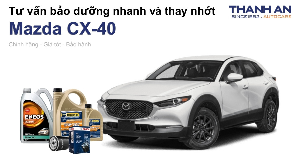 Bạn đang sở hữu chiếc Mazda CX-40 với thiết kế thời thượng cùng khối động cơ SkyActiv tiên tiến nhưng lại lo ngại hiệu suất giảm sút sau một thời gian vận hành? Động cơ cần được bảo vệ bởi lớp màng dầu bôi trơn chất lượng để duy trì sự êm ái và khả năng bứt tốc mạnh mẽ. Hãy cùng Thanh An Autocare tìm hiểu tường tận quy trình thay nhớt xe Mazda CX-40 đúng kỹ thuật giúp xế yêu luôn bền bỉ và vận hành tối ưu.